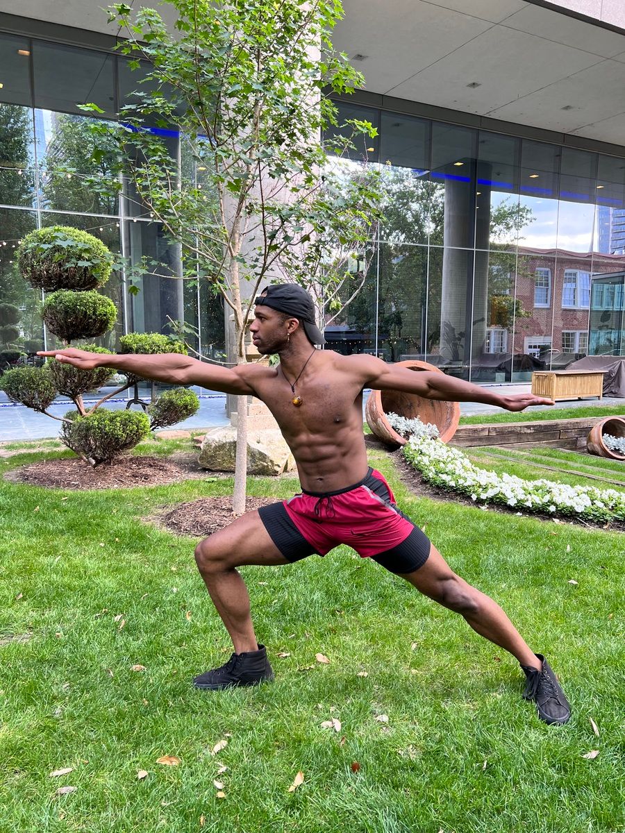 Below is a picture of me practicing a pose connecting with nature and the environment.
